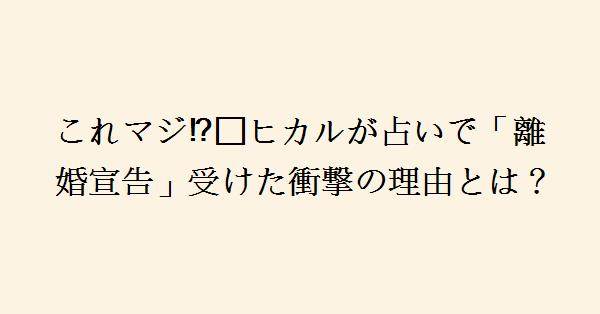 YouTuberのヒカルは12月17日に「絶対離婚する」と題した動画を公開し、占い師である細木かおりから「離婚したほうがいい」というアドバイスを受けた。その背景には、彼が運気の悪い時期である「大殺界」に入っていること、そして実業家の進撃のノアと結婚したタイミングが悪かったことがある。ヒカルは今年5月に「0日婚」を実施し、9月には「オープンマリッジ」宣言で炎上し登録者が507万人から481万人に減少するなど影響が出ている。