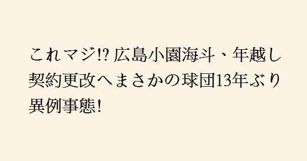 広島カープの小園海斗内野手(25)は、2023年12月19日に契約更改交渉が越年する見込みとなりました。小園選手以外の54選手は既に契約を更改しており、小園選手が唯一の未契約者となっています。球団本部長の鈴木氏は「未定。年を越すかもしれない」とし、年内決着は困難である見通しを示しました。この状況は広島球団としては13年ぶりとなる事例です。