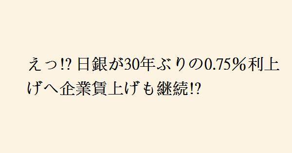 1、0.75%は既に市場は織込んでいると思われます。銀行株もメガバンクなども金利の先高感で、軒並み年初来高値を既に更新してます。既に0.75%以上の利上げを見込み始めているようです。為替は円高に向かう様子も無く、インフレを抑える為には更なる利上げは必須だと思います。