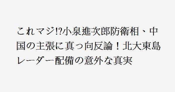 小泉進次郎防衛相は19日、沖縄県北大東島へのレーダー配備計画について、中国からの「挑発ではないか」という主張に反論した。小泉氏は記者会見で、「防御のための装備であり、他国への脅威とはならない」と説明。配備される移動式警戒管制レーダーは、日本に接近する航空機やミサイルを探知するためのものだと強調した。この前日の18日、中国外務省の郭嘉昆副報道局長が、日本の軍事動向に関する懸念を示し挑発行為ではないかとコメントしていた。