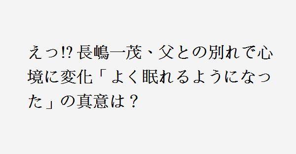 1、その気持ち同感です。私も数年前、元気すぎる認知症の94歳の父と、あとを追うように92歳で亡くなった母を見送ったあと不思議に眠れるようになりました。初めは、何これ不謹慎な両親が亡くなって楽になったのかと自分を責めたが周りの同じように両親を見送った友人たちからそれはちがうぞと言われました。一生懸命介護したり排泄介助など頑張ったから、天国の両親が、ありがとうゆっくり休んでと言ってるんだろうと思えと。一茂さんも一生懸命、偉大すぎる父、長嶋茂雄さんを介護したり面倒見ていたからだと思いますよ。
