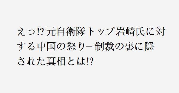 中国外務省は、自衛隊元統合幕僚長の岩崎茂氏に制裁を発表しました。制裁内容は、中国国内の不動産や財産を凍結し、中国への入国を禁止するものです。この背景には、岩崎氏が今年3月に台湾の内閣にあたる行政院で政務顧問に任命されたことがあります。中国側はこれを「台湾独立」勢力との結託と見なしており、一つの中国原則に反する挑発行為と主張しています。