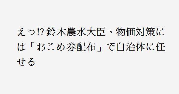 2、ただの選択肢の一つってことでもう良いじゃん。自治体ごとに好きなの選べば。ただ、ここまで叩かれているお米券を選択する自治体があるなら市民からどういう目で見られるようになるかは覚悟しておいた方が良いと思いますよ。今の鈴木大臣への評価を見て慎重に選択してほしいですね。