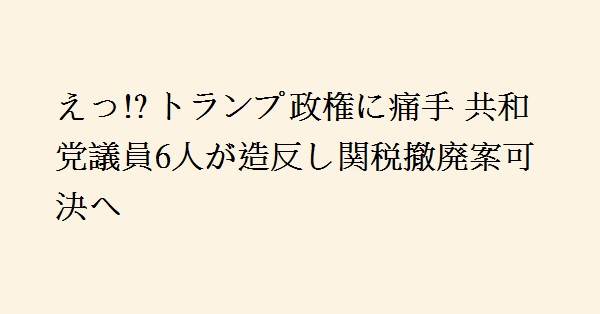 共和党議員が造反するまでに至った背景には、関税政策による経済的な負担が国内企業や消費者に直接跳ね返っている点が挙げられます。党派を超えて懸念が示される事態は、政策が経済合理性から外れている証拠です。また、拒否権を濫用し政策変更を阻む方法は、議会の存在意義そのものを軽視する行為といえます。