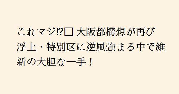 1、「身を切る改革」という看板で支持を稼ぎ、その勢いで副首都化と都構想を一気に飲み込ませる算段だったのでしょうが、現状は完全に「空回り」に見えます。定数削減などのパフォーマンスが期待したほど響かず、国民の冷ややかな視線を浴びながらも、後戻りできずに既定路線を突き進む姿には強い違和感を覚えます。そもそも二度も否決された都構想を、今度は「副首都の要件」という外圧にすり替えて復活させる手法は、あまりに強引です。名古屋市の指摘通り、特定地域の統治機構を条件化すれば、それは国家戦略ではなく「大阪維新の悲願」の押し付けに過ぎません。「民主的プロセス」と言いながら、法定協を介さず議論を既成事実化しようとする姿勢は、民意の軽視とも取れます。身を切る改革が「やってる感」と見透かされた今、この皮算用な議論が全国的な共感を得るのは極めて困難ではないでしょうか。