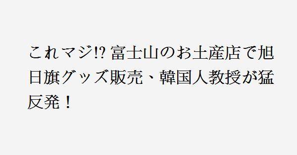 徐坰徳教授が、自身のフェイスブックで富士山周辺の記念品店において旭日旗が掛けられた杖が販売されていることを批判した。彼は、多くの韓国人観光客から情報提供があり、この商品が海外観光客に広く売られている状況を報告。その結果、日本の象徴物と誤解されて購入されていると指摘。特に旭日旗の歴史的背景を知らない観光客に対し、その事実を広め、販売を防ぐため、多国語映像を通じたグローバルキャンペーンの実施を提案した。