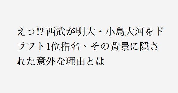 明治大学ではドラフト候補投手らをリードし、経験を積んだ。また、西武は今季の古賀悠斗捕手の働きに加え、さらなる競争が必要との声があり、小島選手が今秋ドラフト候補捕手でトップクラスと評されることから、1位指名を決定した。