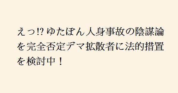 愛車は廃車の可能性が高いとのことです。事故後、彼の状態について事実を疑う声も一部で上がりましたが、ゆたぼんはデマとして否定し、法的措置を検討しています。事故の詳細は彼のYouTubeでも報告されています。