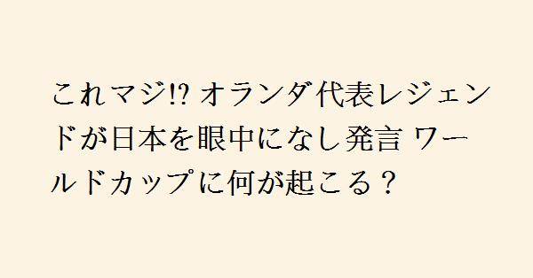 2、この調子でオランダ全体が日本を舐めてくれると助かる。前回のワールドカップでドイツ、スペインは戦前、楽に勝てる相手と日本のことを酷評してた。でも現実は日本がドイツ、スペインを叩きのめした。今回も大物食いして欲しい。やってくれると選手を信じてる。
