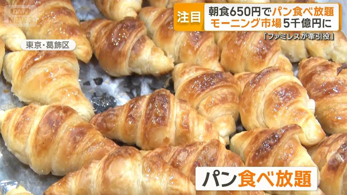 朝食市場は新型コロナ感染拡大以降、急速に成長し、昨年9月には市場規模が5000億円を超えるまでに拡大しました。東京都葛飾区のパン屋では、平日650円、土日700円でパンの食べ放題を提供。早朝から行列ができる人気ぶりです。制限時間内に20種類以上の焼きたてパンを楽しめるほか、千葉県から訪れる家族もいるなど広範囲から集客をしています。外食ビジネスアナリストによれば、物価高の中で家庭での朝食準備より外食の方が時間もコストも効率的であり、手軽さと価格競争力が現在のモーニングブームを支えているとのこと。各外食チェーン店が朝食の提供強化を進める中、業界全体がこのトレンドに注力しています。