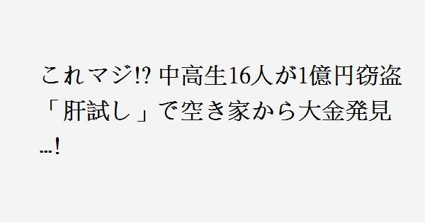 2、「肝試しで入ったら見つけた」では済まされない(呆)空き家だろうが現金だろうが、他人の財産を複数回にわたって持ち出し、しかも16人が関与して約1億円という規模になれば、これは出来心ではなく立派な組織的窃盗でしょ。未成年という肩書きが免罪符になると思っているなら、その甘さこそが問題でしょう。遊ぶ金欲しさに犯罪に手を染め、結果の重さを想像すらしない。被害者の人生や不安、財産の意味を一切考えない自己中心性は、年齢ではなく教育と家庭、そして本人の倫理観の欠如。少年法は「守るための法律」であって「何をしてもいい制度」ではない。ここで厳正な対応をしなければ、本人たちのためにも社会のためにもならない。かわいそうだから軽く、ではなく、重さを理解させる処分こそが本当の更生だと思います。