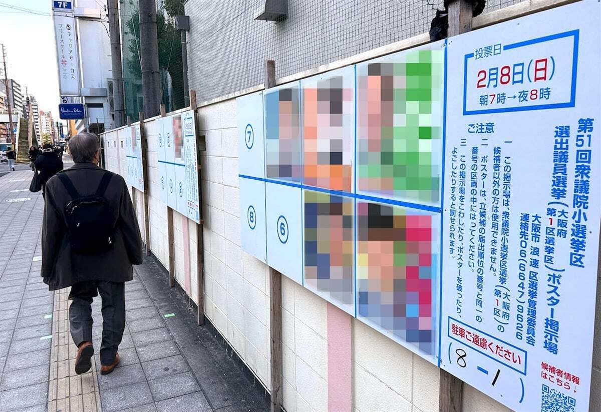 真冬の短期決戦となった2024年衆院選では、ポスター掲示板の設置が公示後も完了していない事態が続発している。19日に高市早苗首相が解散を表明してから公示まで8日間しかなく、実施日が他の首長選とも重なり、積雪などの悪条件が重なった結果だ。大阪市では掲示板設置数が約2,000カ所から700カ所程度に縮小。豪雪地帯の兵庫県香美町などでは実際の設置が困難となり、東京都・神奈川県の自治体首長5人も「日程の超短縮による現場負担の深刻化」を問題視する声明を発表。新人候補など知名度に依存しない周知手段が十分確保されず、有権者の意思形成が危ぶまれている。