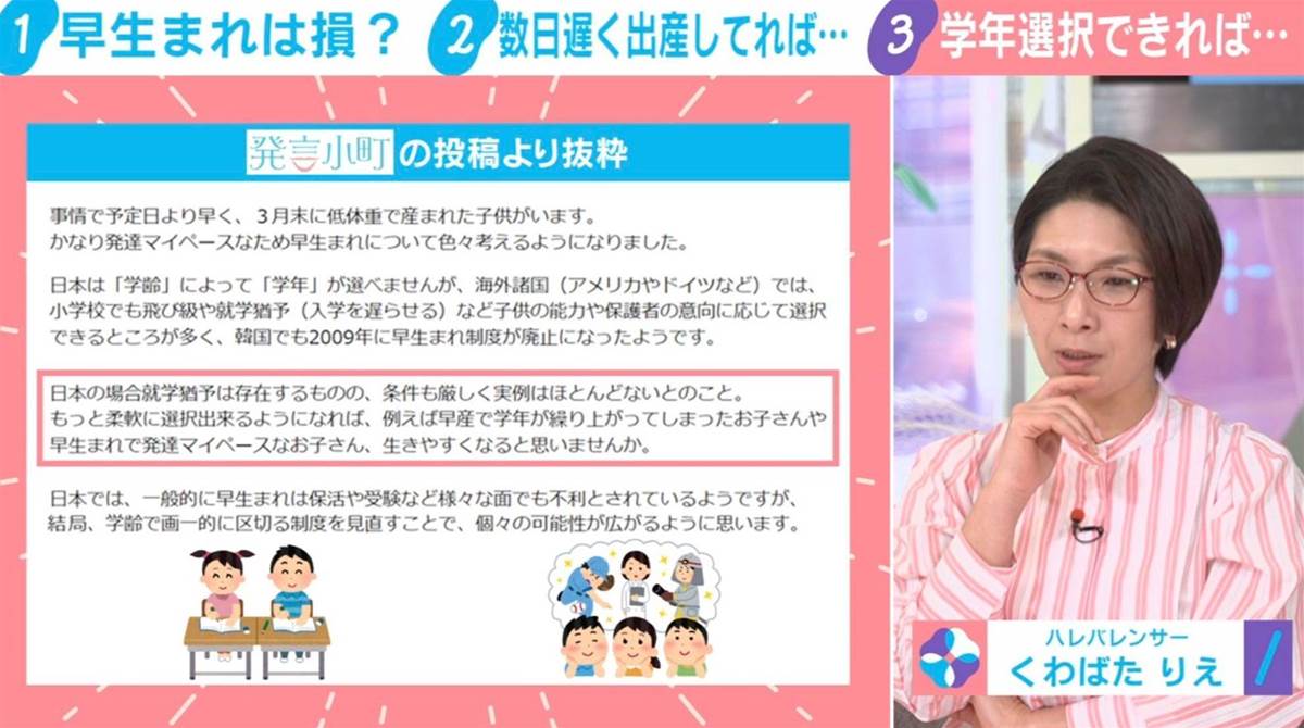 早生まれに関する話題は、特に新年度前後に浮上する親たちの不安として知られています。ニュース番組『わたしとニュース』では、このテーマについての街の声やネット上の意見を取り上げ、お笑いコンビ・クワバタオハラのくわばたりえと共に深掘りしました。SNS上でも、早生まれの差を実感した母親の体験が漫画として投稿され、多くの共感を呼んでいます。日本では学齢が画一的に区切られるため、早生まれの子供が不利に感じることがあり、柔軟な制度変更を求める声もあります。この議論には、親の心配を理解しつつ、海外の制度を通じた可能性を探る意見が寄せられています。