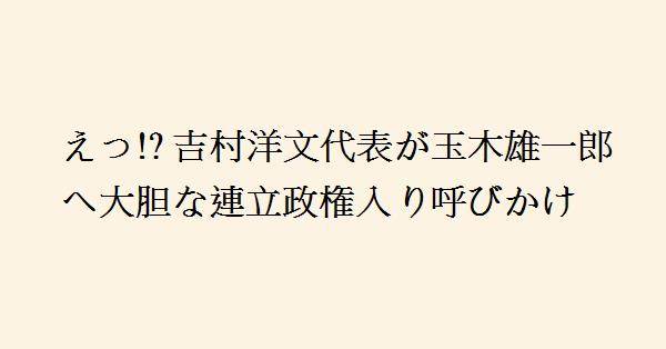 吉村氏は、更に国民民主党の主張する「103万円の壁」を178万円に引き上げる案を支持し、連立入りが政策実行に必要であると主張した。