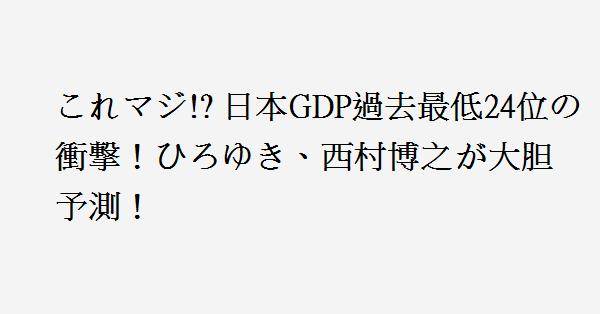 西村博之氏が、日本の1人当たり名目GDPがOECD加盟38カ国中24位に落ち込んだことについて、自身のX(旧ツイッター)で意見を述べました。日本のGDPは、かつての最低だった23年の22位からさらに順位を下げ、スペインやスロベニアに追い抜かれました。これについて西村氏は、低成長と円安進行による経済状況に警鐘を鳴らし、「感情論ではなく理にかなった対応が必要」と主張。