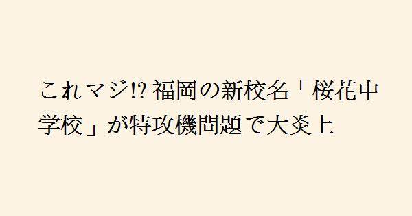福岡県大牟田市で、市立中学2校の統合に伴い、新校名を「桜花(おうか)中学校」と決定。しかし、「桜花」が太平洋戦争で特攻機として使用された名称であることから、市民団体は名前の再考を教育委員会に申し入れた。多くの若者が命を落とした特攻機としての歴史を考慮し、戦争記憶の風化に警鐘を鳴らしたいという意図がある。同時に、SNSでは「桜花賞もあるのに、なぜ騒ぐ」など賛否が分かれた。