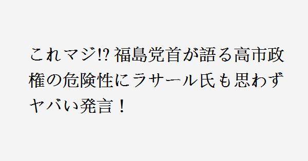 2、『ヤバいぞ』と言うのは、スパイ防止法制定で、代表の身が危ないと言う事ですか?中国に情報流して何がいけないと、開き直っていたけど、国家安全保障上やってはいけない。福島瑞穂さんは、良く民意と言っているが、多くの人が支持する意見が民意。極々一部の人の意見は、本来の民意では無い。日本に社会主義・共産主義はいりませんね。