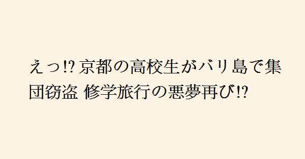1、高校生が修学旅行にバリ島にも驚きましたが、万引き行動に呆れてしまいました。小学校で修学旅行に行きますが、事前学習、現地での学習、事後学習をしっかり行います。目的をもって修学旅行に行っています。集団行動についてもオリエンテーションで指導します。高校も同様だと思います。単なる観光旅行でしょうか。観光旅行なら大人になってからでいいでしょう。高校生は観光気分だったのでしょうか。残念でなりません。私学ですから海外研修はあるのかもしれませんが、ちゃんとした研修プログラムが必要だと思いました。バリは英語圏ではありませんが、伝統文化のある地域です。日本では学ぶことができない学習をしてきてほしかったです。