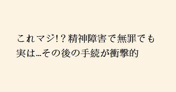 3、法律の条文には「対象行為を行った際の精神障害を改善」とある。つまり、事件を起こした当時は精神障害があったけど現在は改善している場合、罪にも問われず入院もさせられないということ。薬物やアルコールでの一時的な心神喪失も事件後に正常な判断能力があれば同じだろう。