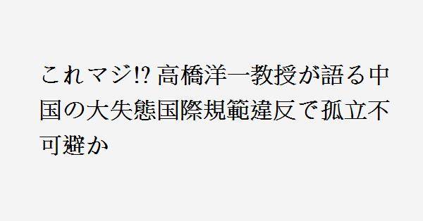 沖縄本島南島の公海上空で、6日に中国軍機が自衛隊機に対し2度のレーダー照射を行った問題が発生。このうち2度目の照射は、ミサイルの標的を合わせる火器管制用レーダーであったことが確認され、防衛省が抗議を行った。高橋洋一教授は、中国の外務省が「探索レーダーだった」と誤った説明をしたことを指摘し、海上回避行動規範(CUES)違反を背景に、中国が国際的に孤立する可能性を述べた。