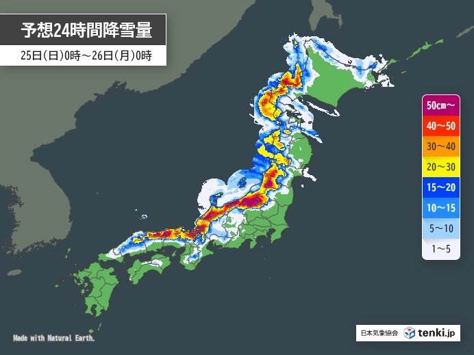 12月25日、強い冬型の気圧配置の影響で、北日本から西日本の日本海側にかけて大雪が予想されています。山沿いだけでなく、普段雪が少ない平野部や太平洋側でも雪が降る可能性があり、積雪や路面凍結による交通状況の悪化へ注意が必要です。北陸や岐阜県では短時間での急激な降雪の影響で、公共交通機関や道路が混乱に陥る恐れがあります。また、雪崩や着雪による倒木や電線断線なども懸念され、注意を呼びかけています。特に大阪や名古屋など、雪に慣れない都市部への影響が予期されており、十分な準備が求められています。