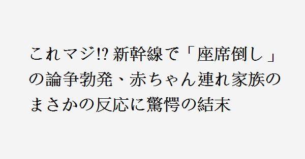 年末年始の帰省ラッシュを迎える新幹線の中で、「座席を倒していいですか?」と尋ねた女性(Yさん)が、後ろに座る家族連れから「赤ちゃんいるんで無理」と拒否される出来事が発生。Yさんは指定席を予約し、東京駅から乗車したが、後方には2席に夫婦と子ども計5人が押し込まれた状態。座席を倒す権利をめぐり、トラブルと文句が続いたが、最後に詳細不明のスカッとした結末を迎えたとのこと。