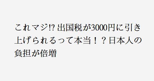 2、パスポート手数料下げて、日本人の出国税上げるとは、理解不能。入国税はオーバツーリズムの今、5万円位に上げるべきだし、宿泊税は15%から20%に上げるべきです。