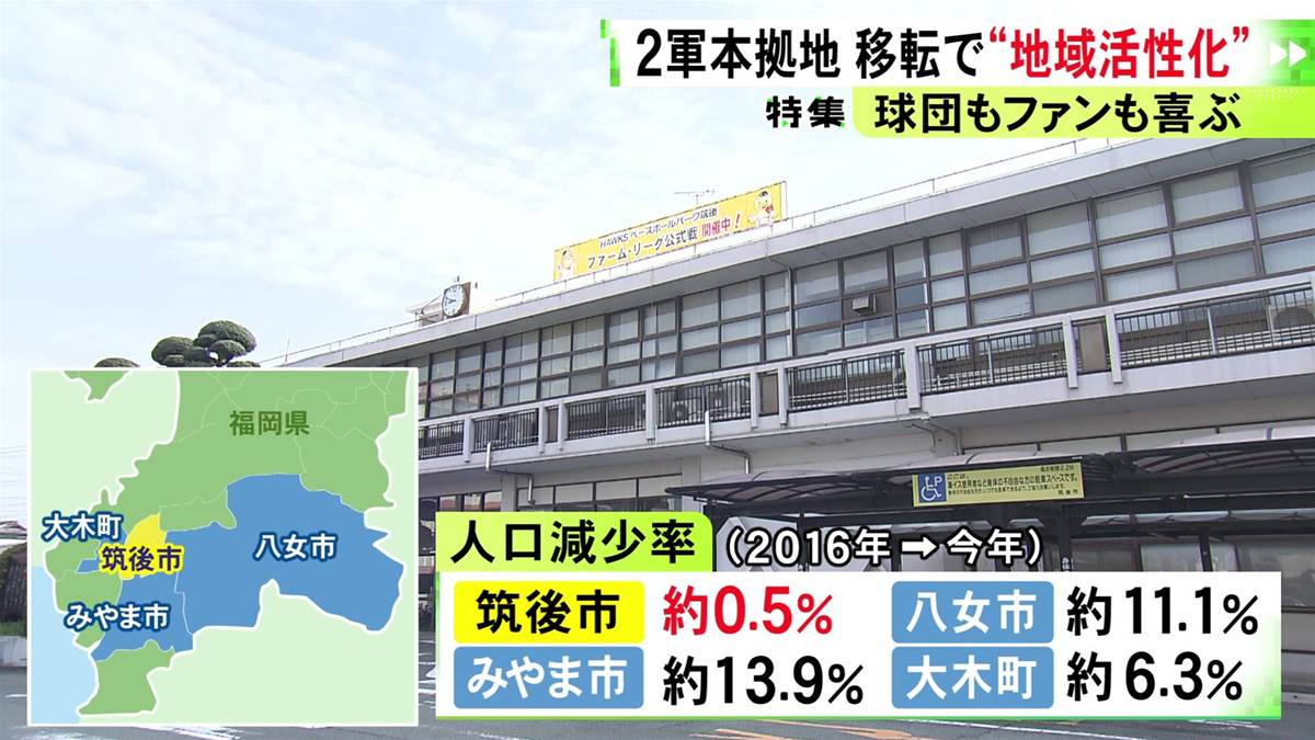 4、思った通り、中日の2軍施設の誘致は争奪戦になりましたね。ホークスの筑後市移転の大成功を見てたら、他の自治体も黙ってないですね。日ハムしかり…ホークスの経済効果のおかげで、地域の特産品とのコラボ商品やホークスコラボのふるさと納税と言ったもののおかげで、自治体が恩恵を受けた結果、人口増加と財政力指数の向上に繋がり、何もなかった田舎の小さな街が子育てしやすい街になりましたし…2軍施設も素晴らしいものになってほしいと願ってます
