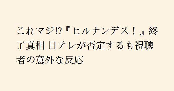 お昼の名物番組『ヒルナンデス!』の放送終了報道が12月6日に『WEB女性自身』から出されるも、日本テレビは速やかにこれを否定しました。『ヒルナンデス!』は2011年3月にスタートし、MC南原清隆さんと曜日ごとのレギュラー陣が出演する情報バラエティ番組です。年3億円とも言われる南原さんの高額ギャラに対して視聴率は伸び悩んでおり、改編期ごとに打ち切りの噂が立つという状況です。