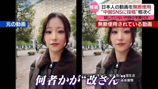 日本人の動画が中国SNSで無断使用され、改ざんされている事例が相次いで報告されています。埼玉県出身の女性「わだりこ」さんの動画には、「琉球は中国の領土」といった内容が勝手に字幕追加されている。被害に遭った他にも、多くの日本人女性の動画が同様に扱われています。中国のみに向けてSNS投稿が行われ、政府の監視と関与が疑われています。