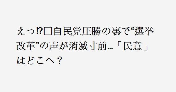 今回の選挙結果により「民意が正確に反映されていない」といった根本的な問題が議論され、改革の必要性が唱えられるものの、自民党の大勝を背景に話題そのものが後退している現状が浮き彫りだ。