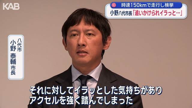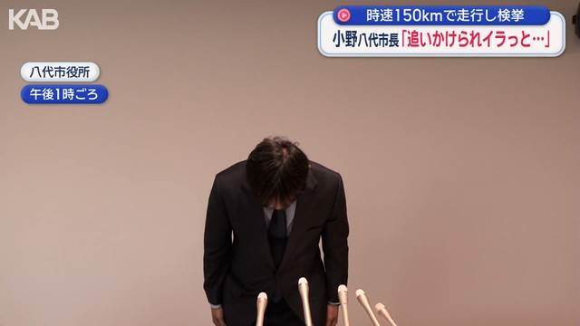 熊本県八代市の小野泰輔市長が、昨年12月に九州道下り線で法定速度時速100キロを超える152キロで走行し、道路交通法違反で検挙されました。その際市長は「追い越し後に追いかけられて、イラっとした気持ちでアクセルを強く踏んだ」と述べています。結果として、罰金8万円の略式命令と運転免許停止90日の行政処分を受けました。また、市議会での謝罪後、市長給与を2カ月間50%減額する条例案を提出する意向を示しています。