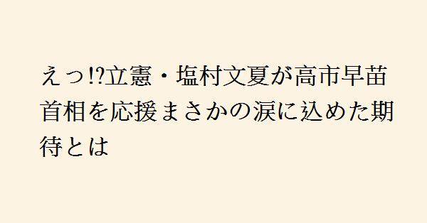 立憲民主党の塩村文夏参院議員が、女性初の首相に就任した高市早苗氏に対し、期待の念を自身のSNSで表明しました。塩村氏は、高市首相の「女性への温もりある社会を」という訴えを取り上げ、涙が出そうになるほど感動したと率直な思いをつづっています。政治的立場は異なるものの、女性政策においては共通する部分があると感じており、彼女の在任中に意義深い政策が進むことを望み、支持を示唆しています。