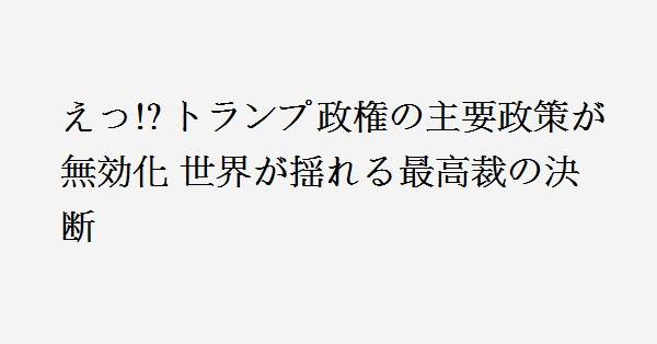 側近を最高裁に送り込んでも、判事はトランプの完全な「太鼓持ち」ばかりにはならなかった証明ですね。日本でも国会で与党が強引なことを始めたら、野党は最高裁に訴えたらいいと思います。法務大臣なんかよりも最高裁が上なんですから。あくまで憲法上のことに限られるとは思いますが、絶対多数に対抗する手はないわけではないですね。