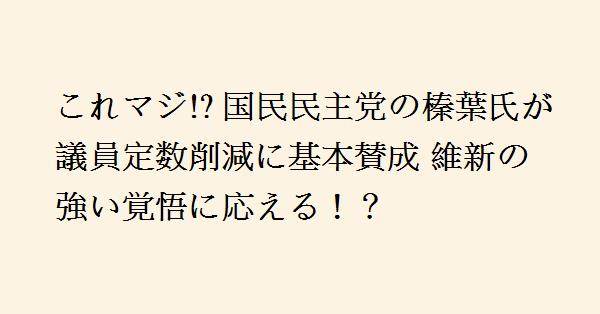 議員定数削減が実現しないと判断できる状態では、定数削減を主張する野党は多いのですが、いざ実現が見えてくると反対に転じることにはとても悲しい気持ちになります。国民への増税は慎重な議論なしに強引に進めるのに対して、自分たちの身分や収入が減りそうなことは慎重に議論する必要があると主張し、結局は実現せずそのまま終わります。今回こそ実現すべきであり、反対する政党はどこなのか国民は注視しましょう。どうか、建設的な議論をお願いします。