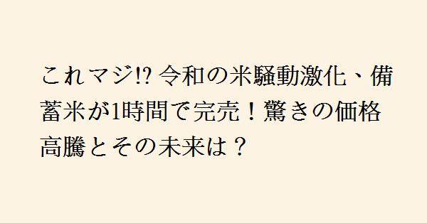 1、元々安かったから米を食べてた人は確実に離れる。ただウクライナ戦争の影響で小麦が高止まり。深刻なのはそれでもパン、麺、オートミールや関税が掛かった外国米の方が安い。卸が強気なのは量を食べない高齢者層が高値でも食べ続けているから。ただ量が必要な若年層のコメ離れが目立つレベルになっているので3500円ではコメ離れが終わらぬどころか、今後非炭水化物に切り替えるには充分納得いく理由になるでしょうね。最低でも2500円までは下げなければ流れは止まらないでしょう。