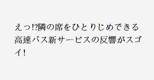 4、経済優先の日本なのでそもそもシートが小さいい。前後も横も間隔が狭い。そりゃ みんな独りで乗りたいって思う。新幹線(自由席)の3席側なんて 綺麗に真ん中が空くし 指定席の2席側は通路側が見事に空いている。独りで乗って ゆとりがあるように運行会社も考えて欲しいまぁ貧乏高速バスの相席ブロックは 同一予約者の場合のキャンセル料を20日前から100%にすれば防げそうだけどね。