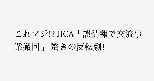 2、JICAの説明不足が大きな原因 相手国に対しても 自治体 市民に対しても。まあ 分かって貰えるだろう 後々説明すればいいって進めるからでしょ。相手国がネットで 特別ビザがって発信したのは そう言う風に理解してるからに他なりません。まあ 今回の炎上騒ぎで JICAがどんな物か どんな事をしてるのか 改めて浮き彫りになったのは 良かったんじゃないですか?