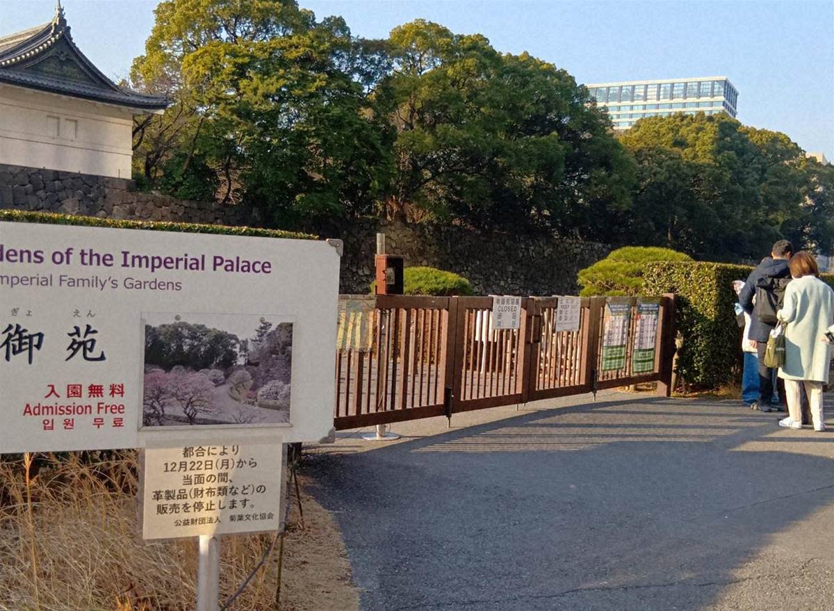 皇居・東御苑で販売されていた「皇居財布」が、昨年末に販売停止となった。テレビで紹介されたことから「縁起がいい」と人気が急上昇し、開園前に1000人以上が列を作る日や深夜から並ぶ客が現れる状況が続いた。スタッフの数や客の安全面で対応困難となり、一時は整理券を導入するも効果は限定的。12月22日に販売中止となった。昭和天皇記念館や京都御所でも同様の混乱があり、宮内庁との協議を進めるものの、販売再開の見通しは立っていない。