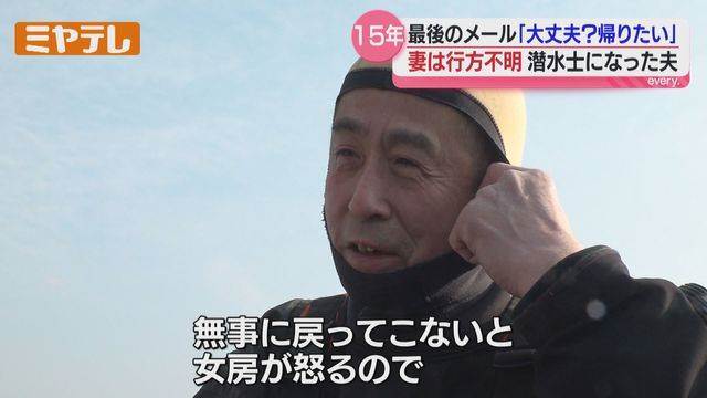 宮城県女川町に住む高松康雄さんは、2011年の東日本大震災で行方不明となった妻・祐子さんを探すため、潜水士の資格を取得し捜索を続けています。震災の日、妻は職場の銀行で津波に巻き込まれ、携帯電話が一ヶ月後に発見されました。「帰りたい」という祐子さんのメッセージに応えようと、康雄さんは750回以上海に潜り続け、潜水中に感じる妻の存在を信じています。彼は最後の瞬間を迎えても前向きに希望を持ち、必ず妻を見つけ出す決意を持ち続けています。