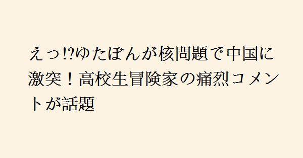 2023年10月20日、元不登校YouTuberで現在高校生のゆたぼんが、SNSで中国外務省報道官の核保有に関するコメントに異議を唱えた。中国報道官は、日本の官邸幹部が核兵器保有を支持する趣旨の発言をしたとの報道を受け、日本に対し危険視するコメントを発表。