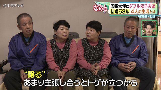 2025年11月22日の「いい夫婦」の日に、名古屋市北区で「初代北区広報大使」として任命されたのは、双子同士の夫婦である深見夫婦です。忠義さん(83)と美智子さん(77)、孝晴さんと喜久子さんが結婚してから53年経ち、4人で生活を共にしています。さらに、裁縫業として自宅併設の工場で子ども服を作るなど、一緒に仕事もしています。