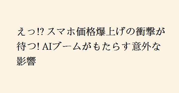 生成AIの拡大に伴い、メモリの価格が高騰し、スマートフォンの価格上昇が予期されています。現在、消費者向けのRAMは逼迫しており、その影響がスマートフォン市場にも波及しています。スマホに使われる専用RAMの供給が減り、価格が約5〜10%上昇する可能性があるとされます。更に、スマホ設計におけるRAM増量が抑制され、特に低価格帯でのメモリ量の削減が予見されています。