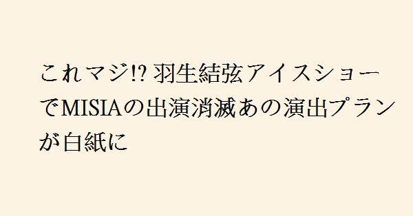3、MISIAさんの『希望のうた』で舞う羽生さんすごく素敵なのでゲストに決まっていたらすごく見たかったという気持ちはありますが、制作段階でゲストが変わることなんてショーでは良くあることでしょう。