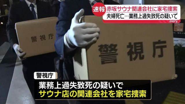 10月15日に東京・赤坂のサウナで発生した火災により、美容院経営者の松田政也さんと妻の陽子さんが亡くなりました。警視庁は、この事件を業務上過失致死の疑いで捜査し、サウナ店の関連会社を家宅捜索しました。事件当時、サウナのドアノブは外れており、非常ボタンを押しても異常を知らせる装置に電源が入っていなかったことが確認されています。