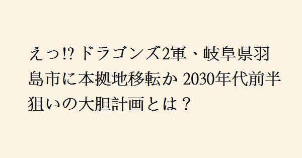 2、羽島市は名古屋市から離れてるのでファンにとっては面倒な場所だが、名古屋まで車で1時間以内で行けるし4,2ヘクタールの市有地を保有してるのは中日球団の条件をクリアしてるのでアピールポイントになる。新幹線の駅もあるのでチームが遠征するのに便利と2軍の本拠地を置くには悪くない。