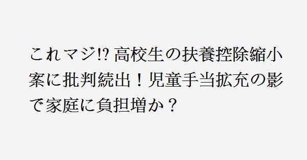 政府が検討している高校生の扶養控除縮小に関するニュースが大きな議論を巻き起こしています。2024年10月から児童手当が高校生まで拡大されるにも関わらず、与野党で扶養控除を縮小する案が協議されています。現在、高校生を扶養する場合、所得税で38万円、住民税で33万円の控除があります。この控除の縮小案が進めば、所得税控除が25万円に、住民税控除が12万円に減少し、税負担が増加する見込みです。