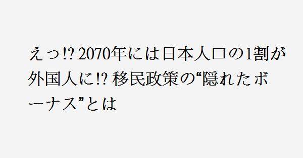 1、人口を数字でしかみていない典型的な机上の空想論だと思う。ヨーロッパはもともと民族の移動が活発だったがそれでも今、深刻な問題になっている。日本ではもともと外国人を広く受け入れる経験がないままに多くの移民とインバウンドで多くの問題が生ている。
