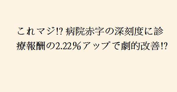2、去年と今年の日本のインフレ率が3%なので、普通に考えて今回の改定で最低でも6%程度は引き上げないと病院の赤字経営は改善されるはずがありません。これは人間に例えると1日2リットルの水が必要な人に1リットルしか与えずに何とかしろと言っているようなもので、持続不可能な状態です。日本の診療報酬制度は社会主義国家で採用される価格統制のような形になってしまっており、病院経営は本来の市場経済からどんどんと乖離してしまっています。