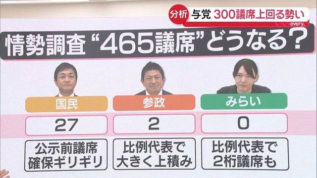 2、過去の選挙でここまで詳しく報じられたことはありません…前回の参議院選挙もそうですしかし報道各社が事あるごとに報じることに違和感を感じたますそれに政局の枠組みが大きく変化して票読みは困難な状況のはず…何か意図があるんでしょうね
